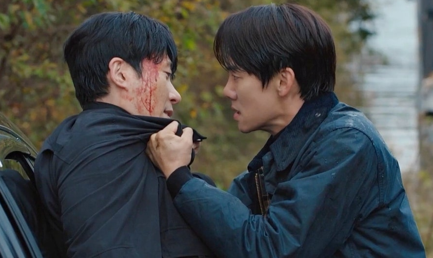 사언와 오드아이는 몸싸움을 벌이고 오드아이가 휘두른 칼에 사언이 위기에 처해 있을 때 박도재가 대신 칼을 맞은 후 사언에게 그동안 자신의 죄를 고백합니다. 쌍둥이 형을 죽인 백사언이 지금의 백사언인 줄 알았다며 원망과 미안함을 쏟아낸 후 의식을 잃고 구급차에 실려갑니다. 낚시터 앞에 서서 힘들어하는 사언을 희주는 안아줍니다.
