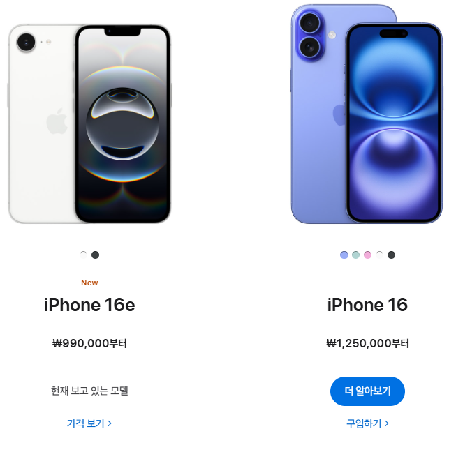 미국 판매가 기준 아이폰 16프로 999달러 > 아이폰 16 799달러 > 아이폰 16e 599달러