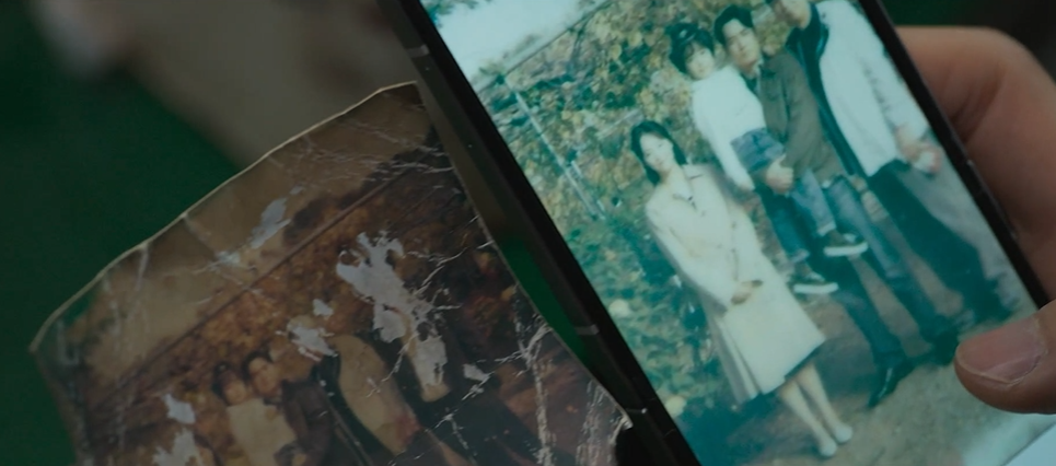 이에 동주는 누나인 아녜스 수녀가 얘기한 적 있어 본인의 생부로 알고 있던 이수평 교수를 찾아갔다가, 이 교수의 동료인 염치선(전진기)을 만나게 됩니다. (염장선의 동생인데 어찌 이렇게 다를 수 있는지 염치선은 딱 선비네요.) 염치선에게서 아녜스 수녀는 이 교수의 딸이 맞으나 동주는 아녜스 수녀의 생모가 데려다 키운 아이였다는 얘길 듣게 됩니다. 혼란에 빠진 동주는 누나와 자기를 키워준 피마담(손지나)을 찾아가고, 그제서야 본인이 어느 날 아녜스 수녀의 집으로 걸어들어온 업둥이라는 걸 알게 됩니다. 그때 입고 있던 옷과 대산의 배지, 진주 머리끈, 동주를 안고 있던 여순호와 동주의 얼굴 외 다른 이들의 얼굴은 다 훼손되어 있는 사진을 피마담은 그제서야 동주에게 전달해 줍니다. 그 사진은 허일도의 핸드폰을 포렌식 하다 찾아낸 그 사진과 같은 거네요.