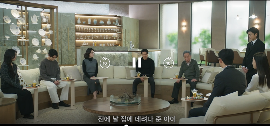 은남의 이혼 위약금 각서를 요구하러 염장선의 집에 방문한 동주는 염장선의 부재로 인해 안채에서 성보연과 차를 마시게 됩니다. 처음 온 안채인데 낯설지 않다는 동주의 말에 뜻밖에 성보연은 반가워하며 어렸을 적 왔던 게 기억나냐며 말실수를 하게 되지요. 사실 동주의 엄마 경원이 어린 동주 즉 성현이를 성보연한테 잠시 맡긴 적이 있었는데 그 얘기를 하기도 전에 경계심으로 날을 잔뜩 세운 염장선이 등장합니다. 염장선은 동주가 이미 본인이 성현이임을 알게 된 걸 아직 모르는 듯하네요. 각서에 양측 서명 후 자신의 옆으로 동주를 불러 물고기밥을 주라며 요구하고, 물고기밥을 주는 동주에게 너 또한 주는 대로 허겁지겁 받아먹는 1등 금붕어일 뿐이니 2조를 가지고 한국을 떠나라 협박합니다. 이에 동주 또한 염장선을 죽인 후 한국을 떠날 계획인데 빨리 죽고 싶은 것이냐 맞받아 칩니다. (사이다!!)