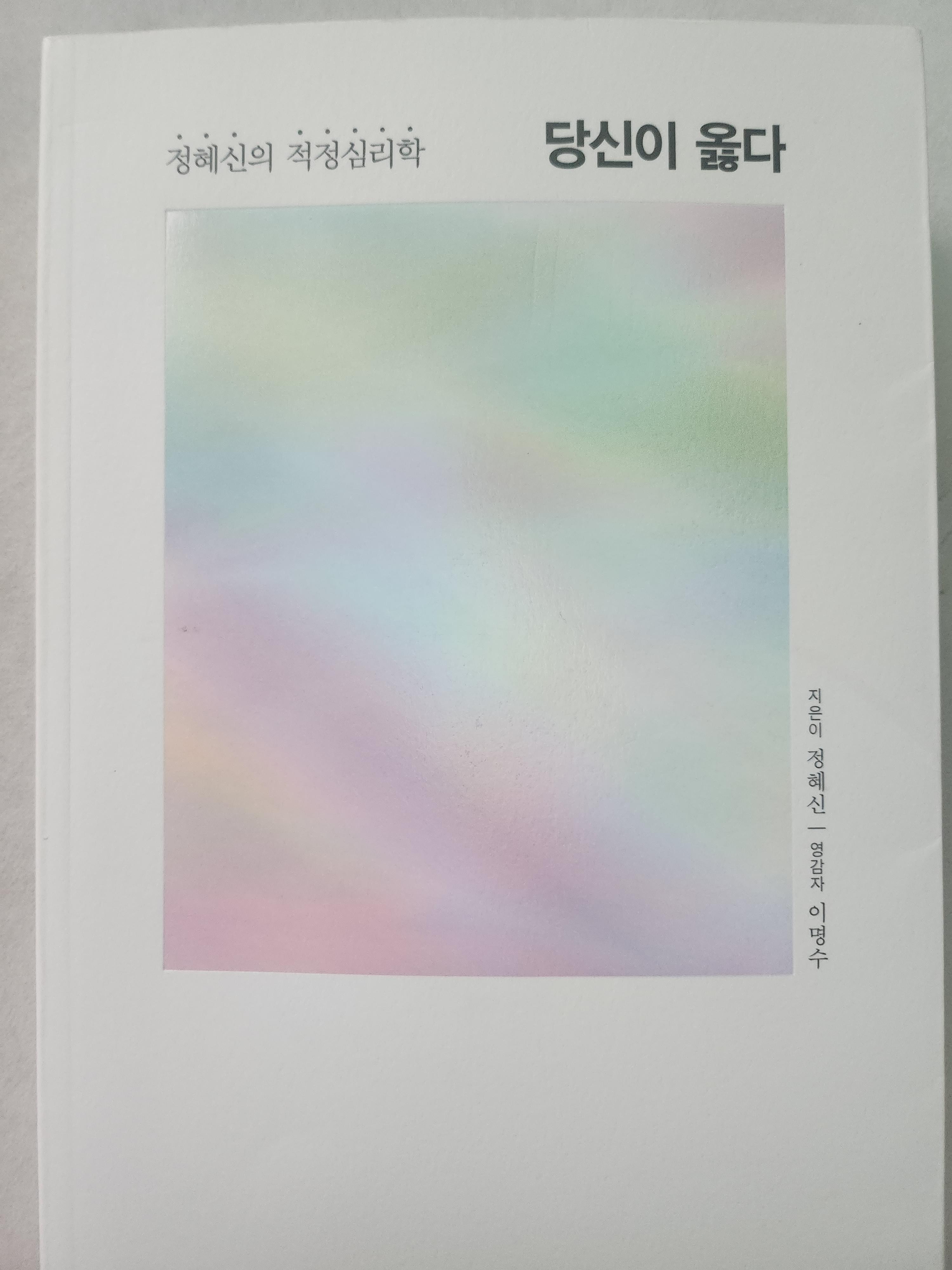 상대의 상처나 아픔을 정신과 의사들은 진단명으로, 일반인들은 감정을 정리하거나 해석하는 방법으로 다루는데, 적정심리학은 '상대의 감정을 판단하지 않고, 상대의 감정을 공감하고 존중함으로써, 있는 그대로 인정해 주는 것으로 치유'를 시도합니다. 제목이 '그대가 옳다'인 이유인 거 같네요.